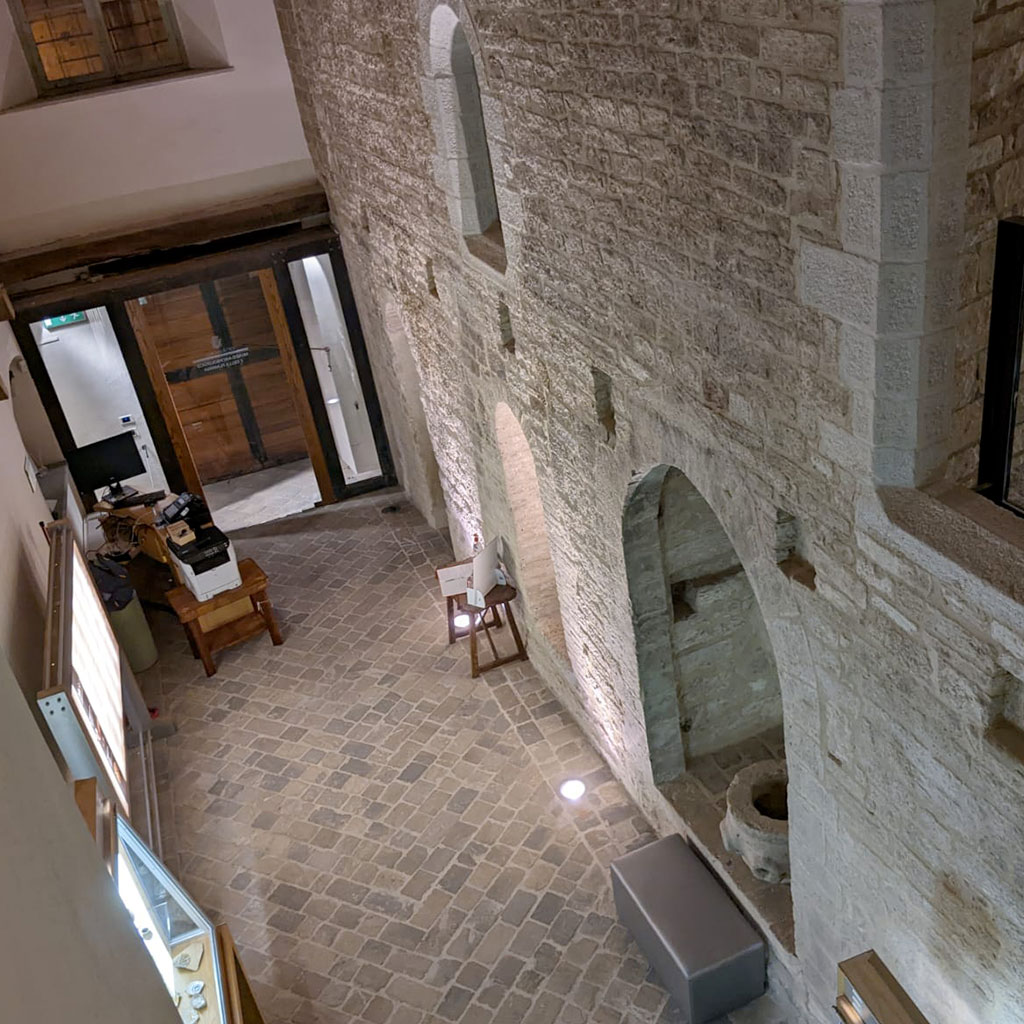 Il Palazzo del Podestà era luogo deputato a far rispettare la giustizia, dove si svolgevano attività pubbliche e mercantili, come testimoniano le logge visibili sul lato affacciato su via Alessandri. Attualmente, questo palazzo ospita il Museo Archeologico della Via Flaminia di Cagli, accessibile dal cortile ora denominato del Cosmo, al cui centro è esposta la scultura “Ordine Cosmico” di Eliseo Mattiacci. Anticamente, una via cittadina separava il Palazzo della Magistratura da quello del Podestà, ma fu chiusa per collegare i due edifici ai piani superiori. Dal cortile, è possibile accedere, tramite due rampe di scale voltate, agli ambienti che un tempo erano adibiti a prigioni.